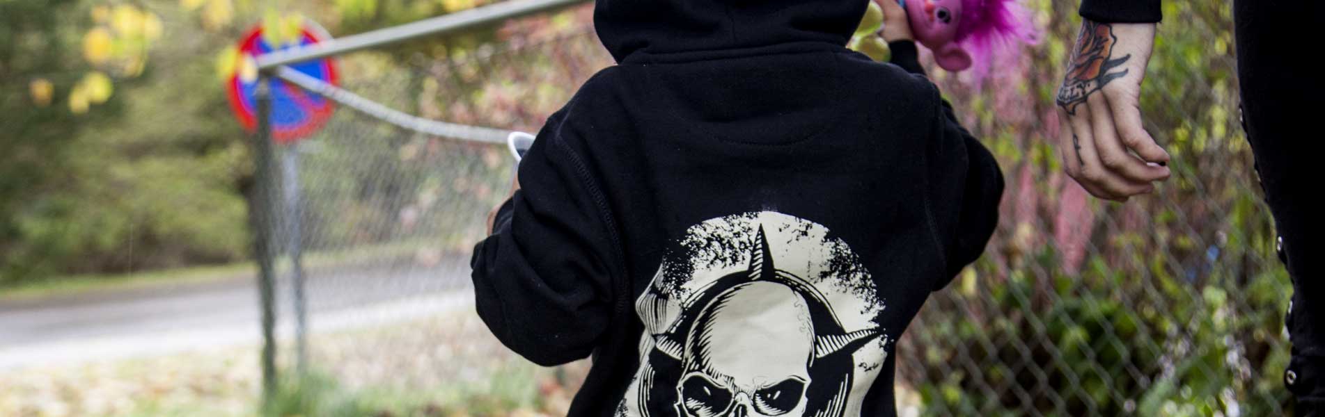 Hos Shock hittar du coola, rockiga kläder och skor till barn i olika åldrar. Vi tycker att de små ska vara lika coola som föräldrarna, så de har en given plats i vårt sortiment. Hos oss hittar du Dr Martens barnskor som är en återspegling av den klassiska 8-hålskängan 1460. Denna hittar du i både rött och svart. Vi säljer även denna i mindre modell till bebisar. Rockiga barnkläder passar till både små och större barn tycker vi. Rockbodys till de små och rockiga t-shirts och hoodies till de större finns hos varumärken som Dark Side och vårt egna märke Shock Store.