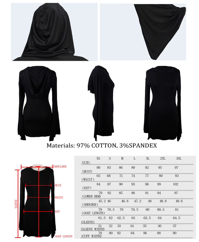 Dark vampire hood/klänning från Restless ‘N’ Wild. Lyxig mjuk stretchjersey för en smickrande och förförisk passform. Överdimensionerad huva, långa och vida ärmar. Den här klänningen är perfekt för en dejt med djävulen eller en utekväll med vampyr coven. Åh så mångsidig – perfekt från skymningen till gryningen. Ser fantastisk ut med -klackar + en choker – mixa och matcha som ditt mörka hjärta önskar!