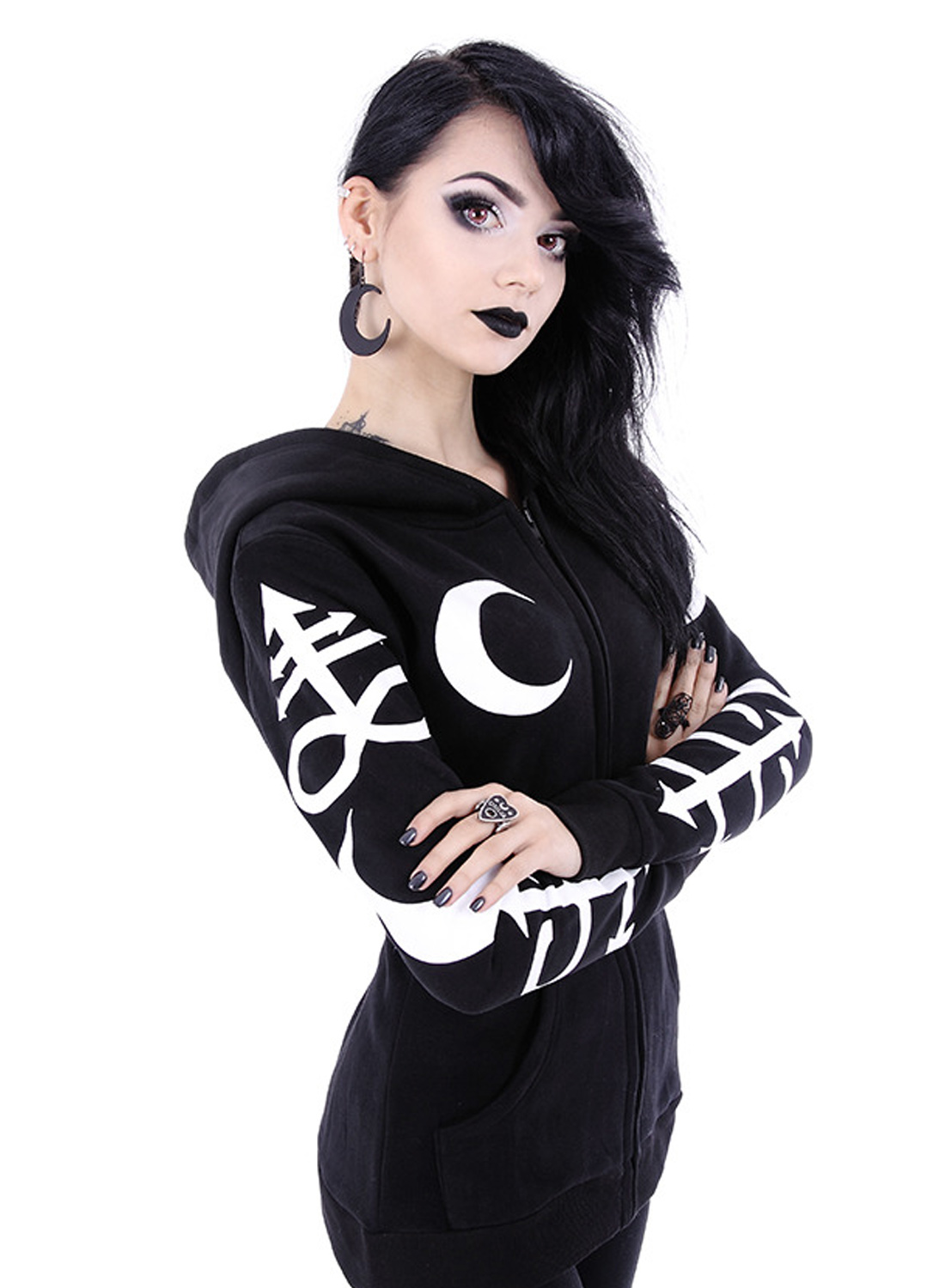 Restyle Occult Symbols Hoodie — стильная, готическая, приталенная толстовка от Restyle. Объемный капюшон с принтом WITCHCRAFT по краям. Рукава покрыты крупными принтами алхимических символов. Благодаря молнии и двум карманам он мгновенно добавит драматизма вашим повседневным ритуалам. Лучшей толстовки, чем эта, вы не найдете!