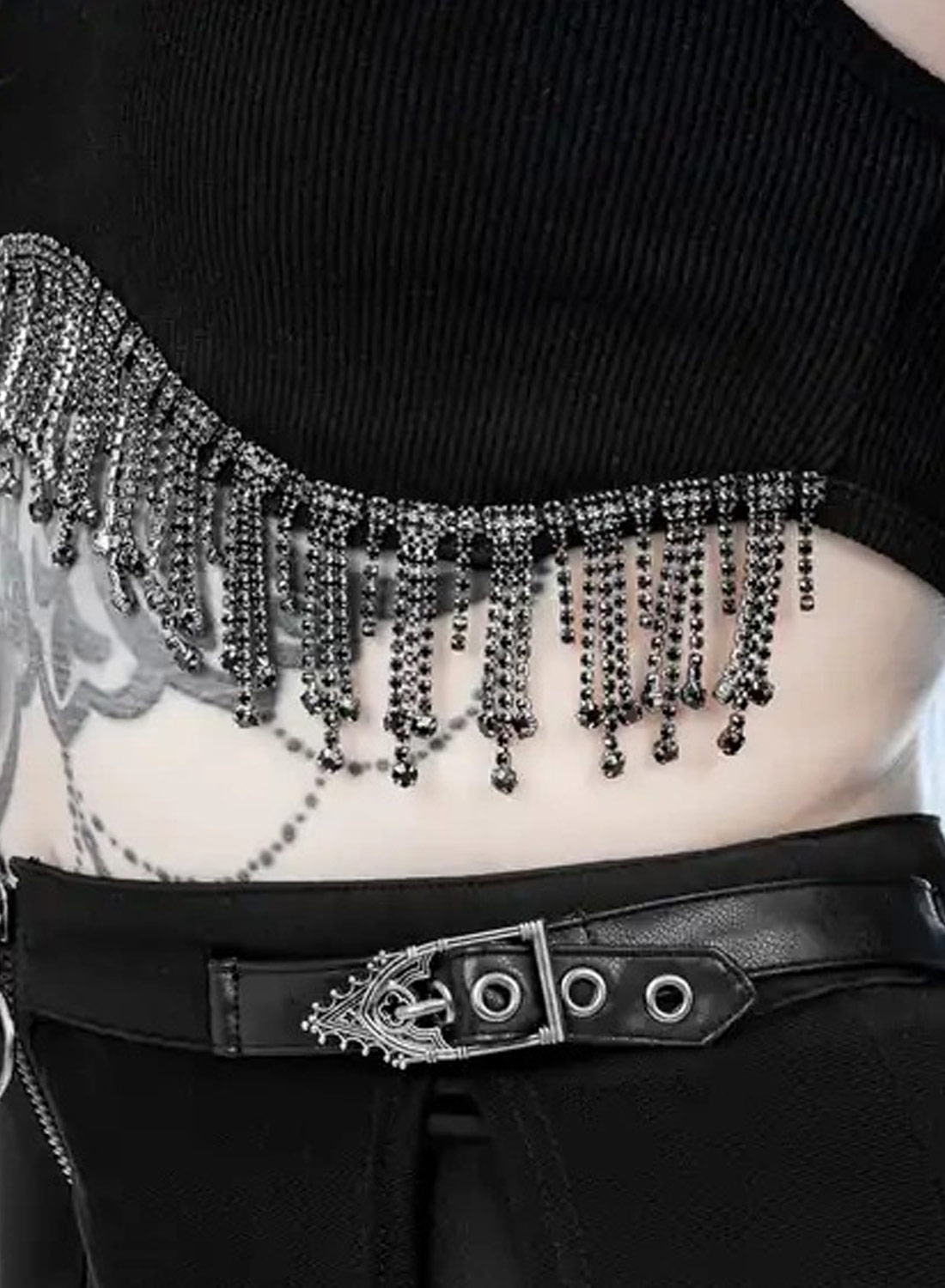 ⋆ Överkjolen är prydd med två silverfärgade katedralspännen och PU-läderremmar på vardera sidan av midjan.