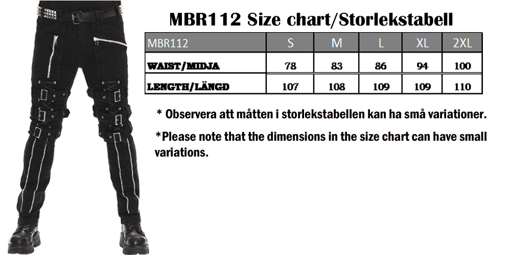 Thrasher Bondage Trousers Black är bondagebyxor från Restless ‘N’ Wild! Elastiskt tyg med dekorativa blixtlås på fram- och bakfickorna. Tre bälten med spännen och snörning på varje ben.