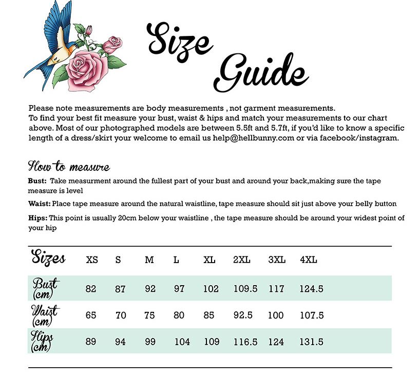 I vårt sortiment hittar du bland annat Hell Bunny jackor, främst kappor av olika slag, rockabilly klänningar, kjolar och playsuit’s.